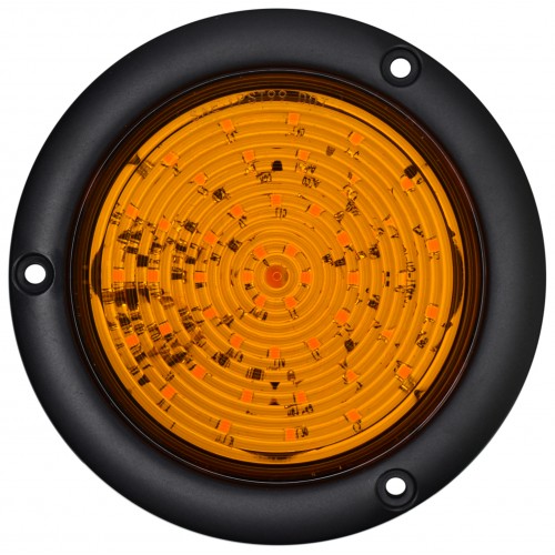 PLAFON REDONDO PLANO Bisel Negro (Luz Led Alta-Baja-Estrobo) 12-24v con 48 Leds 10.2 cm (DOT) AMBAR
